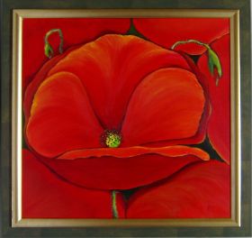 Rahmen: 750/681 oxyd-grün, Kante Prager Gold Bild: Mohnblume 70 x 70 cm Acryl Malerin: Verena Wilms